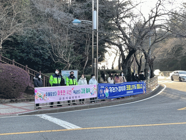 [¹Ìµð¾îÀü³² ÀÓ¼º¿Ï ±âÀÚ] ±¤¾ç½Ã ±ÝÈ£ÀÚÀ²¹æ¹ü´ë´Â 3¿ù 2ÀÏ 7½Ã 30ºÐ~8½Ã 30ºÐ ±¤¾ç½Ã ¸¶·Î´Ï¿¡±æ ÀÔ±¸¿¡¼ ½ÅÇб⠵±æ ¾ÈÀüÄ·ÆäÀÎÀ» ÆîÃÆ´Ù. À̹ø Ä·ÆäÀο¡´Â ±ÝÈ£ÀÚÀ²¹æ¹ü´ë¿ø°ú ±ÝÈ£µ¿»ç¹«¼Ò Á÷¿ø µî 25¸íÀÌ Âü¿©ÇØ, »õ Çб⸦ ¸Â¡¦