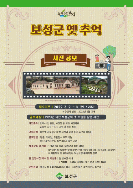 [¹Ìµð¾îÀü³² Á¦°¥´ëÁ¾ ±âÀÚ] º¸¼º±ºÀº 3¿ù 2ÀϺÎÅÍ ¿À´Â 4¿ù 29ÀϱîÁö 2´Þ°£¿¡ °ÅÃÄ ¡®º¸¼º±º ¿¾ Ãß¾ï»çÁø °ø¸ðÀü¡¯À» ½Ç½ÃÇÑ´Ù. °ø¸ð ´ë»óÀº 1990³â ÀÌÀü º¸¼º±º Áö¿ª¿¡¼ ÃÔ¿µµÈ »çÁøÀ¸·Î Èæ¹é°ú Ä÷¯ »çÁø ±¸ºÐ ¾øÀÌ Áö¿ªÀÇ °ÇÃ๰,¡¦