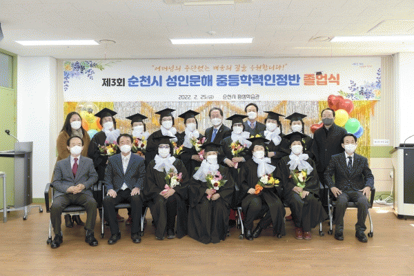 [¹Ìµð¾îÀü³² ÀÓ¼º¿Ï ±âÀÚ] ¼øÃµ½Ã´Â Áö³ 25ÀÏ ¼øÃµ½Ã Æò»ýÇнÀ°ü¿¡¼ 2021Çг⵵ ¼ºÀι®Çر³À° ÁßÇÐÇз ÀÎÁ¤¹Ý Á¹¾÷½ÄÀ» °³ÃÖÇß´Ù. À̳¯ Á¹¾÷½Ä¿¡¼´Â ¼øÃµ½Ã ¼ºÀι®Çر³À° ÁßÇÐÇзÂÀÎÁ¤ ÇÁ·Î±×·¥ À̼ö¸¦ ÅëÇØ Çз ÀÎÁ¤À» ¹ÞÀº 60¡¦