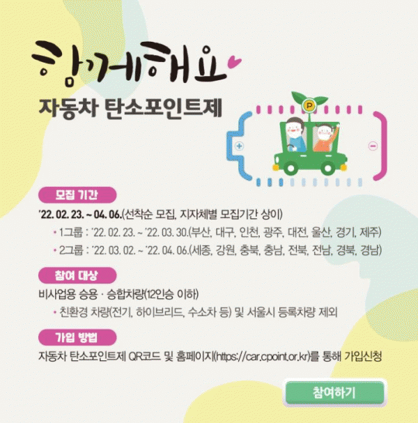 [¹Ìµð¾îÀü³² ±è±âö ±âÀÚ] ¿µ¾Ï±ºÀº ź¼Ò¸¦ Àý°¨ÇÏ´Â ´Ù¾çÇÑ ³ë·ÂÀ» ±â¿ïÀ̰í ÀÖ´Â °¡¿îµ¥ ģȯ°æ ¿îÀü ½ÇõÀ¸·Î ¿Â½Ç°¡½º¸¦ °¨ÃàÇÏ´Â ÀÚµ¿Â÷ ź¼ÒÆ÷ÀÎÆ®Á¦ Âü¿©ÀÚ¸¦ 3¿ù 2ÀϺÎÅÍ 4¿ù 6ÀϱîÁö ¸ðÁýÇÑ´Ù. ÀÚµ¿Â÷ ź¼ÒÆ÷ÀÎÆ®Á¦´Â ÀÚµ¿Â÷ ¡¦