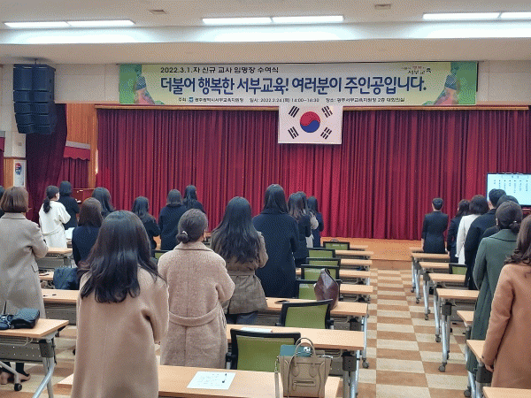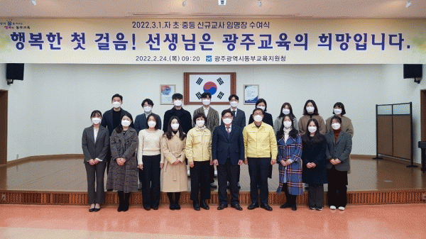 [¹Ìµð¾îÀü³² Á¦°¥´ëÁ¾ ±âÀÚ] ±¤ÁÖ¼ºÎ±³À°Áö¿øÃ»ÀÌ 24ÀÏ ¿ÀÈÄ 2½Ã Áö¿øÃ» ´ë°´ç¿¡¼ 2022³â 3¿ù1ÀÏÀÚ ½Å±Ô±³»ç 58¸íÀ» ´ë»óÀ¸·Î ÀÓ¸íÀå ¼ö¿©½ÄÀ» °¡Á³´Ù. 24ÀÏ ¼ºÎÁö¿øÃ»¿¡ µû¸£¸é À̹ø ¼ö¿©½ÄÀ» ÅëÇØ °ü³» ÃʵîÇб³ ±³»ç 32¸í, ÁßÇС¦