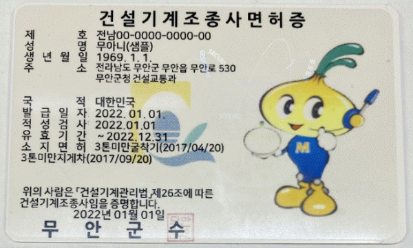 [¹Ìµð¾îÀü³² ±èÆÇ±¹ ±âÀÚ] ¹«¾È±ºÀº ÃÖ±Ù °Ç¼³±â°èÁ¶Á¾»ç ¸éÇãÁõ Ä«µå¹ß±Þ ½Ã½ºÅÛÀ» µµÀÔÇØ ¿î¿µ ÁßÀ̶ó°í ¹àÇû´Ù. ±âÁ¸ °Ç¼³±â°èÁ¶Á¾»ç ¸éÇãÁõÀº Á¾ÀÌÄÚÆÃ ÇüÅ·Π¹ß±Þ±îÁö 20¿©ºÐ Á¤µµ°¡ ¼Ò¿äµÇ¸ç ¹°±â¿¡ Ãë¾àÇÏ°í µé¶ß°Å³ª ¹þ°ÜÁö´Â ¡¦