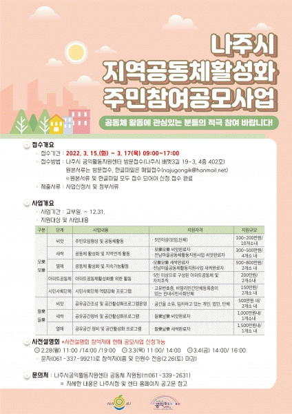 [¹Ìµð¾îÀü³² ¹Úº¹»ê ±âÀÚ] Àü¶ó³²µµ ³ªÁֽô ÁÖ¹ÎÀÇ ÀÚ¹ßÀû Âü¿©¿¡ ±â¹ÝÇÑ ¡®2022³â Áö¿ª°øµ¿Ã¼È°¼ºÈ ÁÖ¹ÎÂü¿© °ø¸ð¡¯ »ç¾÷À» ÃßÁøÇÑ´Ù°í 21ÀÏ ¹àÇû´Ù. ÀÌ »ç¾÷Àº Áö¼Ó°¡´ÉÇÑ °øµ¿Ã¼ »çȸ ±¸ÇöÀ» ¸ñÇ¥·Î ÁֹεéÀÇ ´Ù¾çÇÑ È°µ¿ ¹× Ä¿¹Â¡¦