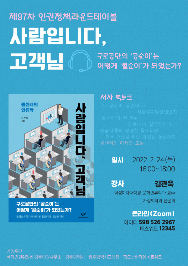 [¹Ìµð¾îÀü³² Á¦°¥´ëÁ¾ ±âÀÚ] ±¤ÁÖ±¤¿ª½Ã±³À°Ã»ÀÌ ¿À´Â 24ÀÏ ¿ÀÈÄ 4½Ã ¡®»ç¶÷ÀÌ´Ù, °í°´´Ô: ±¸·Î°ø´ÜÀÇ ¡¯°ø¼øÀÌ¡®´Â ¾î¶»°Ô ¡¯ÄݼøÀÌ¡®°¡ µÇ¾ú´Â°¡?¡¯¶ó´Â ÁÖÁ¦·Î Á¦97Â÷ ÀαÇÁ¤Ã¥¶ó¿îµåÅ×À̺íÀ» °³ÃÖÇÑ´Ù. 21ÀÏ ½Ã±³À°Ã»¿¡ µû¸£¸é À̹ø¡¦