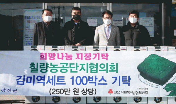 [¹Ìµð¾îÀü³² Á¦°¥´ëÁ¾ ±âÀÚ] Áö³ 15ÀÏ Á¤¿ù´ëº¸¸§À» ¸Â¾Æ Ä¥·®³ó°ø´ÜÁöÇùÀÇȸ´Â Ãë¾à°èÃþ¿¡°Ô Àü´ÞÇØ ´Þ¶ó¸ç 250¸¸¿ø »ó´çÀÇ ±è¡¤¹Ì¿ª 100¼¼Æ®¸¦ °Áø±º¿¡ ±âÅ¹ÇØ µû¶æÇÑ ÀÌ¿ô »ç¶ûÀ» ½ÇõÇß´Ù. À̳¯ ±âŹµÈ ±è¡¤¹Ì¿ª¼¼Æ®´Â Ȧ·Î »ç½Ã¡¦