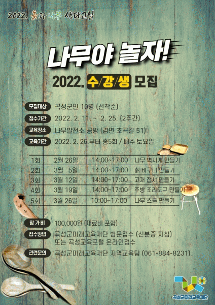 [¹Ìµð¾îÀü³² Á¦°¥´ëÁ¾ ±âÀÚ] °î¼º±º¹Ì·¡±³À°Àç´Ü¿¡¼ ¸ñ°ø¿¹ »ýű³½Ç¡®³ª¹«¾ß ³îÀÚ¡¯Âü°¡ÀÚ¸¦ ¸ðÁýÇÑ´Ù. ¡®³ª¹«¾ß ³îÀÚ¡¯´Â ³ª¹«¹ßÀü¼ÒÇùµ¿Á¶ÇÕ°ú ¿¬°èÇØ ¿î¿µÇÏ´Â »ýȰ¸ñ°ø °úÁ¤À¸·Î ¿À´Â 2¿ù 26ÀϺÎÅÍ ¸ÅÁÖ Åä¿äÀÏ 5ȸÂ÷ ÁøÇàµÈ´Ù. ¡¦