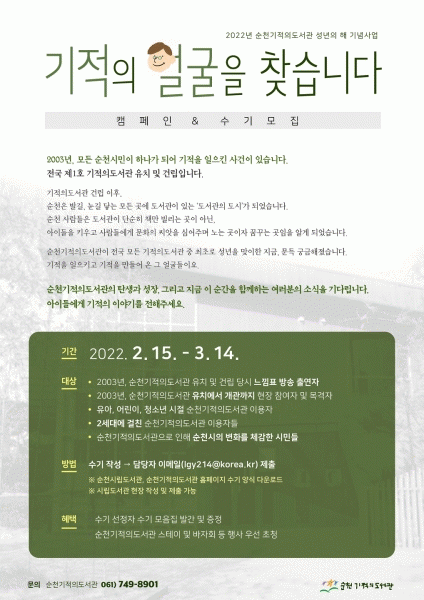[¹Ìµð¾îÀü³² ÀÓ¼º¿Ï ±âÀÚ] ¼øÃµ½Ã´Â ¼øÃµ±âÀûÀǵµ¼°ü ¼º³âÀÇ ÇØ¸¦ ¸Â¾Æ ¿À´Â 2¿ù 15ÀϺÎÅÍ 3¿ù 14ÀϱîÁö ¡®±âÀûÀÇ ¾ó±¼À» ã½À´Ï´Ù¡¯Ä·ÆäÀÎÀ» ¿î¿µÇÑ´Ù. À̹ø Ä·ÆäÀÎÀº 2003³â ¼øÃµÀ» ¶ß°Ì°Ô ´Þ±¸¾ú´ø ¼øÃµ±âÀûÀǵµ¼°ü À¯Ä¡ ¹× °Ç¸³ ´ç¡¦