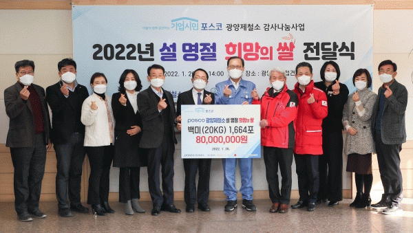 [¹Ìµð¾îÀü³² ÀÓ¼º¿Ï ±âÀÚ] Æ÷½ºÄÚ ±¤¾çÁ¦Ã¶¼Ò°¡ Áö³ 26ÀÏ Áö¿ª»çȸÀÇ ¼Ò¿ÜµÈ ÀÌ¿ôµéÀÌ µû¶æÇÑ ¼³À» º¸³¾ ¼ö ÀÖµµ·Ï 20kg ¹é¹Ì 1,664Æ÷¸¦ ±¤¾ç½Ã»ç¶û³ª´®º¹ÁöÀç´Ü¿¡ Àü´ÞÇß´Ù. ¼³ ¸íÀýÀ» ¸Â¾Æ Áö¿øµÇ´Â Èñ¸ÁÀÇ ½Ò 1,664Æ÷´Â Áö¿ª ³» »çȸ¡¦