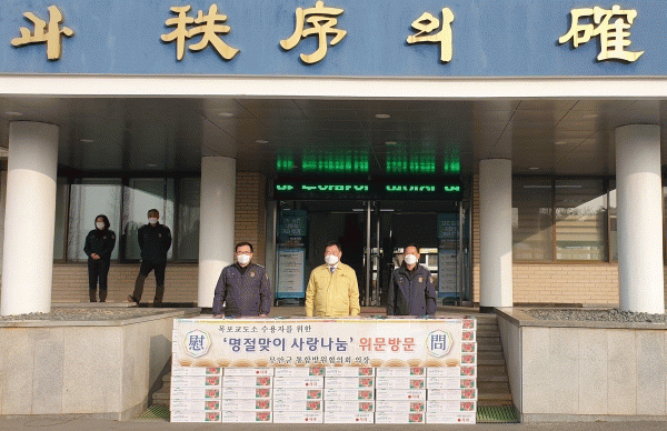 [¹Ìµð¾îÀü³² ±èÆÇ±¹ ±âÀÚ] ¹«¾È±º ÅëÇÕ¹æÀ§ÇùÀÇȸ´Â ¼³ ¸íÀýÀ» ¾ÕµÐ Áö³ 26ÀÏ Àç³ ¿¹¹æ°ú Áö¿ª ¹æÀ§¿¡ Çå½ÅÇϰí ÀÖ´Â ±ººÎ´ë, ¼Ò¹æ¼ ±³µµ¼Ò µîÀ» ¹æ¹®ÇØ ¹«¾È»ç¶û»óǰ±Ç µî À§¹®Ç°À» Àü´ÞÇÏ°í ³ë°í¸¦ °Ý·ÁÇÏ´Â ½Ã°£À» °¡Á³´Ù. À̹ø À§¡¦