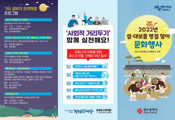 [¹Ìµð¾îÀü³² Á¦°¥´ëÁ¾ ±âÀÚ] ±¤ÁÖ±¤¿ª½Ã´Â ¼³ ¿¬ÈÞ¿Í ´ëº¸¸§ ÁÖ°£À» ¸Â¾Æ ±â°ü°ú ÀÚÄ¡±¸, ¸¶À» µî¿¡¼ ¿Â¡¤¿ÀÇÁ¶óÀÎÀ¸·Î ÃÑ 10¿© °³ÀÇ ¹®ÈÇà»ç°¡ ¿¸°´Ù°í 25ÀÏ ¹àÇû´Ù. À̹ø ¼³ ¸ÂÀÌ ¹®ÈÇà»ç´Â °¡Á¤¿¡¼ °¡Á·°ú ÇÔ²²ÇÏ´Â ¡®ºñ´ë¸é ¿Â¡¦