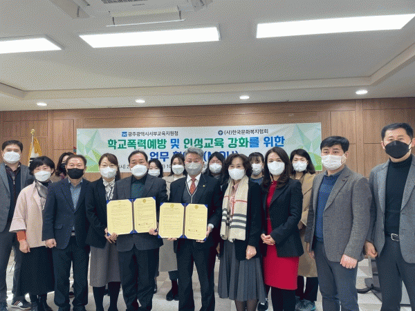 [¹Ìµð¾îÀü³² Á¦°¥´ëÁ¾ ±âÀÚ] ±¤ÁÖ¼ºÎ±³À°Áö¿øÃ»ÀÌ 20ÀÏ Áö¿øÃ» ³» ¼ÒȸÀǽǿ¡¼ Çѱ¹¹®Èº¹ÁöÇùȸ¿Í ¾÷¹«Çù¾àÀ» ü°áÇß´Ù. 20ÀÏ ¼ºÎÁö¿øÃ»¿¡ µû¸£¸é À̹ø Çù¾àÀº Çб³ÇöÀå¿¡¼ ¹ß»ýÇÏ´Â Çб³Æø·ÂÀ» ¿¹¹æÇϰí ÇлýµéÀÇ Àμº±³À°À» °È¡¦
