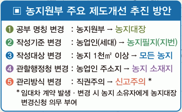 [¹Ìµð¾îÀü³² Á¦°¥´ëÁ¾ ±âÀÚ] ³óÁöÀÇ °øÀû ÀåºÎ·Î ±â´ÉÇØ¿Â ³óÁö¿øºÎ Á¦µµ°¡ Àü¸é °³ÆíµÈ´Ù. ȼø±º¿¡ µû¸£¸é, 4¿ù 15ÀϺÎÅÍ ³óÁö¿øºÎ ¸íĪÀº ³óÁö´ëÀåÀ¸·Î ¹Ù²î°í ÀÛ¼º ±âÁØ, ÀÛ¼º ´ë»ó ³óÁö, °üÇÒ ÇàÁ¤Ã», °ü¸® ¹æ½Äµµ º¯°æµÈ´Ù. Áö³¡¦