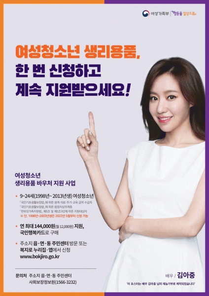 [¹Ìµð¾îÀü³² ÀÓ¼º¿Ï ±âÀÚ] ¼øÃµ½Ã´Â ¿©¼ºÃ»¼Ò³âµéÀÇ °Ç°±Ç º¸ÀåÀ» À§ÇØ »ý¸®¿ëǰ ±¸ÀÔºñ¿ëÀ» Áö¿øÇÏ´Â 2022³â Àú¼Òµæ ¿©¼ºÃ»¼Ò³â »ý¸®¿ëǰ Áö¿ø»ç¾÷À» ½Ç½ÃÇÑ´Ù. ¿©¼ºÃ»¼Ò³â »ý¸®¿ëǰ Áö¿ø»ç¾÷Àº Àú¼ÒµæÃþ ¿©¼ºÃ»¼Ò³âµéÀÇ °Ç°ÇÑ ¼ºÀåÀ»¡¦