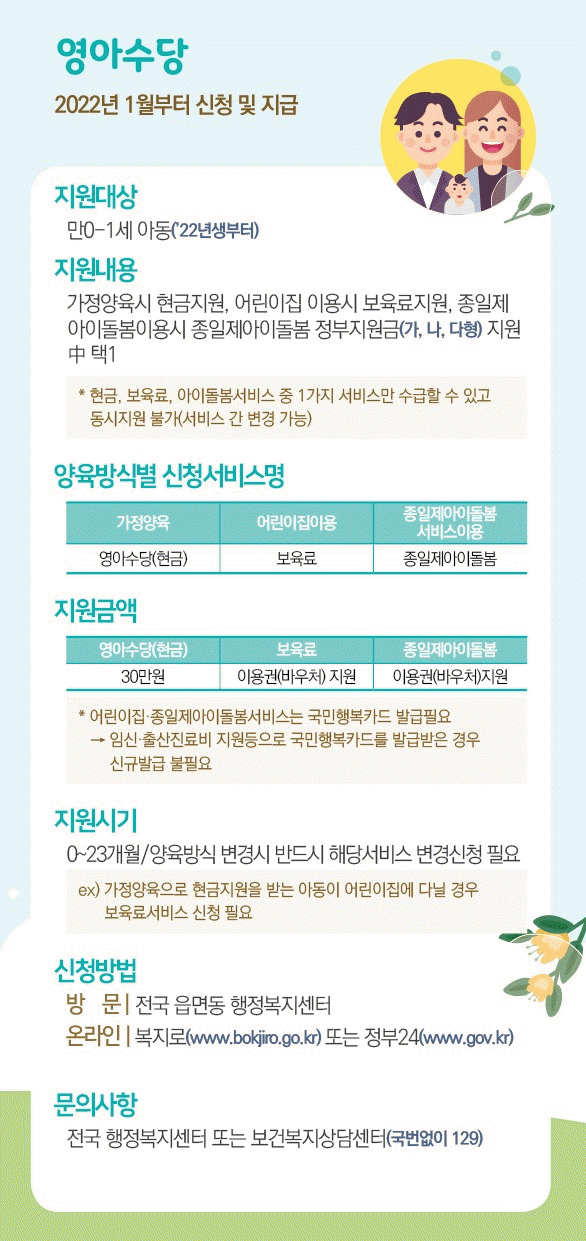 [¹Ìµð¾îÀü³² Á¦°¥´ëÁ¾ ±âÀÚ] ´ã¾ç±ºÀÌ 2022³â 1¿ù 1ÀÏ ÀÌÈÄ Ãâ»ý¾Æ¸¦ ´ë»óÀ¸·Î ¿µ¾Æ¼ö´ç 30¸¸¿øÀ» ¸Å¿ù Áö¿øÇÑ´Ù. ¿µ¾Æ¼ö´çÀº Ãâ»ê °¡Á¤ÀÇ Ãʱ⠾çÀ°ºÎ´ãÀ» °æ°¨ÇÏ°í ¾Æµ¿ÀÇ °Ç°ÇÑ ¹ß´Þ°ú ¼ºÀåÀ» Áö¿øÇϱâ À§ÇØ ½Å¼³µÆ´Ù. °¡Á¤¿¡¼ ¡¦