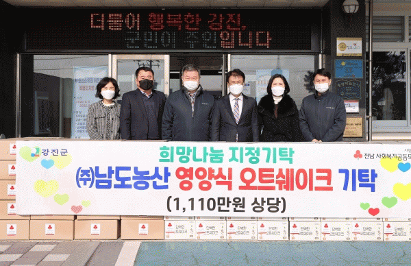 [¹Ìµð¾îÀü³² Á¦°¥´ëÁ¾ ±âÀÚ]Áö³ 10ÀÏ ³²µµ³ó»êÀº °Áø±º °ü³» Ãë¾à°èÃþÀ» À§ÇØ 1,100¸¸¿ø »ó´çÀÇ ¿µ¾ç½Ä ¿ÀÆ®½¦ÀÌÅ© 150¹Ú½º¸¦ °Áø±º¿¡ ±âŹÇß´Ù. ±âŹ ½ÄǰÀº ´ß°¡½¿»ì, ¹«³ó¾à °Áø»ê ½Ò±Í¸®, Çö¹Ì, »õ½Ïº¸¸® µî 100¿© °¡Áö °î¹°°ú ¡¦