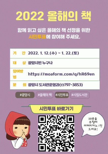 [¹Ìµð¾îÀü³² ÀÓ¼º¿Ï ±âÀÚ] ±¤¾ç½Ã¸³µµ¼°üÀº ½Ã¹ÎÀÌ °ø°¨ÇÒ ¼ö ÀÖ´Â ¡®2022 ¿ÃÇØÀÇ Ã¥¡¯À» ¼±Á¤Çϱâ·Î ÇÏ°í ¿À´Â 1¿ù 22ÀϱîÁö ¿Â¶óÀÎÀ» ÅëÇÑ ½Ã¹Î ÅõÇ¥¸¦ ½Ç½ÃÇÑ´Ù. ½Ã´Â ¹ü½Ã¹Î µ¶¼¿îµ¿ÀÎ ¡®½Ã¹Î ÇÑ Ã¥ Àб⡯ »ç¾÷ÀÇ º»°Ýȸ¦ À§ÇØ ¡¦