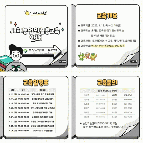 [¹Ìµð¾îÀü³² Á¦°¥´ëÁ¾ ±âÀÚ] º¸¼º±ºÀº »õ·Î¿î ¿µ³ó±â¼ú Á¤º¸ÀÇ ½Å¼ÓÇÑ º¸±Þ°ú »õÇØ ¿µ³ó ¼³°è¸¦ À§ÇØ ¡®2022³â »õÇØ³ó¾÷ÀÎ ½Ç¿ë±³À°¡¯À» ºñ´ë¸éÀ¸·Î ½Ç½ÃÇÑ´Ù. ±³À°Àº ¿À´Â 1¿ù 13ÀϺÎÅÍ 2¿ù 18ÀϱîÁö ½Ç½ÃµÇ¸ç 15°úÁ¤¿¡ 1,000¸íÀ» ´ë»ó¡¦