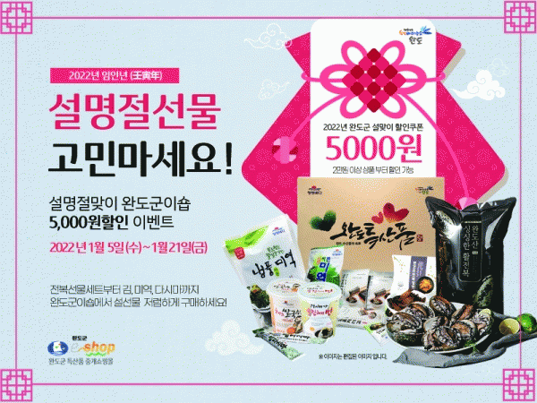 [¹Ìµð¾îÀü³² Á¦°¥´ëÁ¾ ±âÀÚ] Àü³² ¿Ïµµ±ºÀº ¿À´Â 1¿ù 21ÀϱîÁö ³ó¼öƯ»ê¹° ¿Â¶óÀÎ ¼îÇθôÀÎ ¡®¿Ïµµ±ºÀ̼󡯿¡¼ ¼³¸ÂÀÌ ÇÒÀÎ Çà»ç¸¦ ½Ç½ÃÇÑ´Ù. À̹ø Çà»ç´Â ¡®¿Ïµµ±ºÀÌ¼ó¡¯ ¼îÇθô¿¡ µî·ÏµÈ 2¸¸¿ø ÀÌ»óÀÇ »óǰ ±¸ÀÔ ½Ã °Ç´ç 5õ¿øÀÌ ÀÚ¡¦