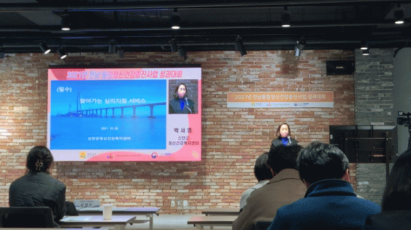 [¹Ìµð¾îÀü³² °í±Ô¼® ±âÀÚ] ½Å¾È±º Á¤½Å°Ç°º¹Áö¼¾ÅÍ ¡®Ã£¾Æ°¡´Â ½É¸®Áö¿ø¼ºñ½º¡¯°¡ 2021³â Àü¶ó³²µµ ÅëÇÕÁ¤½Å°Ç°»ç¾÷ ¼º°ú´ëȸ¿¡¼ ¿ì¼ö»ç·Ê·Î ¼±Á¤µÆ´Ù. Áö¿ªÁÖ¹ÎÀ» ´ë»óÀ¸·Î ÇÑ ¿ì¿ï¼±º°°Ë»ç¿¡¼ °íÀ§Ç豺 45¸íÀ» ¹ß±¼ÇÏ°í ±× Áß 2¡¦