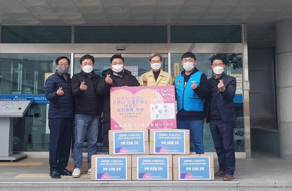 [¹Ìµð¾îÀü³² ¹Úº¹»ê ±âÀÚ] ³ªÁֽà ³²ÆòÀ¾ ´Üüȸ¿øµéÀÌ °ÃßÀ§ ¼Ó Äڷγª19¿Í »çÅõ ÁßÀÎ º¸°Ç¼Ò Á÷¿øµéÀÇ ÁöÄ£ ¸¶À½À» º¸µë´Â Ưº°ÇÑ ¼±¹°À» ÀüÇß´Ù. ³ªÁֽà º¸°Ç¼Ò´Â ÃÖ±Ù ³²ÆòÀ¾ ÀÚÀ²¹æ¹ü´ë¿Í ºÀ»ç´ÜüÀÎ ¿ì¸®µ¿³×È÷¾î·Î¿¡¼ ¼±º°Áø·á¡¦