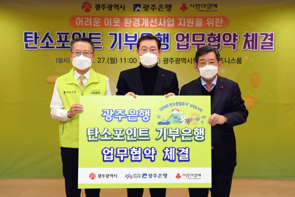 [¹Ìµð¾îÀü³² Á¦°¥´ëÁ¾ ±âÀÚ] ±¤ÁÖ±¤¿ª½Ã´Â ź¼ÒÆ÷ÀÎÆ®Á¦ ±âºÎÁ¦µµ¸¦ Ȱ¿ëÇÑ Ãë¾à°èÃþ ¹× Ãë¾àÁö¿ª ȯ°æ°³¼±»ç¾÷ °øµ¿Áö¿øÀ» À§ÇØ 27ÀÏ ½Ãû ºñÁî´Ï½º·ë¿¡¼ ±¤ÁÖÀºÇà, ±¤ÁÖ»çȸº¹Áö°øµ¿¸ð±Ýȸ¿Í ¡®Åº¼ÒÆ÷ÀÎÆ® ±âºÎÀºÇà °øµ¿Áö¿ø ¾÷¹«Çù¾à¡¦