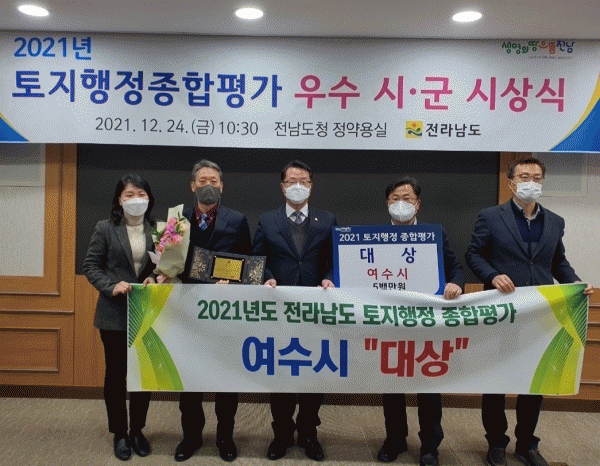 [¹Ìµð¾îÀü³² ÀüÇü¼º ±âÀÚ] ¿©¼ö½Ã°¡ Áö³ 24ÀÏ Àü¶ó³²µµ ÅäÁöÇàÁ¤ Á¾ÇÕÆò°¡¿¡¼ ´ë»óÀ» ¼ö»óÇϸç 8³â ¿¬¼Ó ¼ö»ó ±â°üÀ̶ó´Â ¿µ¿¹¸¦ ¾È¾Ò´Ù. Àü³²µµ´Â 22°³ ½Ã¡¤±ºÀÇ ÁöÀûÇàÁ¤, ÁöÀûÀçÁ¶»ç, °³º°°ø½ÃÁö°¡, ºÎµ¿»ê½Ç°Å·¡, µµ·Î¸íÁÖ¼Ò, °ø°£¡¦
