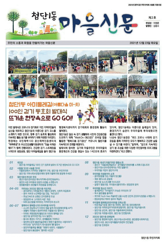 [¹Ìµð¾îÀü³² ±èÁ¤¿ì ±âÀÚ] ±¤ÁÖ ±¤»ê±¸ ÷´Ü1µ¿ ÁÖ¹ÎÀÚġȸ°¡ ¿Ã ÇÑÇØ ÁֹεéÀÇ »î°ú À̾߱⸦ ´ãÀº ¸¶À»½Å¹®À» ¹ßÇàÇß´Ù. À̹ø¿¡ ¹ßÇàÇÑ ¸¶À»½Å¹®Àº ÀÛ³â 12¿ù ù ¸¶À»½Å¹®À» â°£ÇÑ ÀÌÈÄ, µÎ ¹øÂ°´Ù. ÷´Ü1µ¿ ÁÖ¹ÎÀÚġȸ´Â ¸¶À»½Å¹® ¡¦