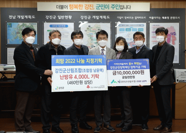 [¹Ìµð¾îÀü³² Á¦°¥´ëÁ¾ ±âÀÚ] Áö³ 16ÀÏ °Áø±º»ê¸²Á¶ÇÕ¿¡¼ °Áø±º¿¡ ÀåÇÐ±Ý 1,000¸¸¿ø°ú 460¸¸¿ø »ó´çÀÇ ³¹æÀ¯ 4,000L¸¦ ±âºÎÇØ Áö¿ª»çȸ¿¡ ÈÆÈÆÇÔÀ» ´õÇß´Ù. °Áø±º»ê¸²Á¶ÇÕÀº Á¶ÇÕ¿ø°ú ÀÓ¾÷ÀÎÀÇ ¼ÒµæÀ» âÃâÇÏ°í ±º ÀÓ¾÷ÀÇ ¹ßÀüÀ» ÀÌ¡¦