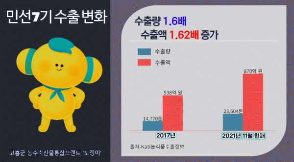[¹Ìµð¾îÀü³² Á¦°¥´ëÁ¾ ±âÀÚ] °íÈﱺ ³ó¼öƯ»ê¹° ¼öÃâÀÌ Äڷγª19¶ó´Â ¾ÇÁ¶°Ç ¼Ó¿¡¼µµ ¿Ã ÇÑÇØ ¿ª´ë ÃÖ°í ¼öÃâ±â·ÏÀ» ´Þ¼ºÇØ »õ ¿ª»ç¸¦ ¸¸µé¾ú´Ù. 2017³â 14,770Åæ 538¾ï¿øÀ̾ú´ø °íÈﱺ ³ó¼öƯ»ê¹° ¼öÃâÀº ¹Î¼±7±â Àû±ØÀûÀÎ ¼öÃâ½ÃÀå °³¡¦