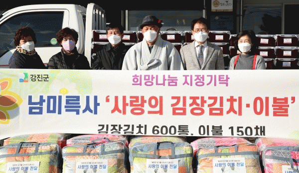 [¹Ìµð¾îÀü³² Á¦°¥´ëÁ¾ ±âÀÚ] Áö³ 14ÀÏ °Áø±º ³²¹Ì¸¤»ç¿¡¼ ¾î·Á¿î ÀÌ¿ôµéÀÇ °Ç°ÇÑ °Ü¿ï³ª±â¸¦ À§ÇØ °Áø±º¿¡ ±èÀå±èÄ¡ 600Åë°ú °Ü¿ï ÀÌºÒ 150¼¼Æ®¸¦ ±âŹÇß´Ù. À̳¯ ±âŹµÈ ±èÀå±èÄ¡´Â ±âŹ½Ä Àü³¯ÀÎ 13ÀÏ À̸¥ ¾ÆÄ§ºÎÅÍ ³²¹Ì¸¤»ç °æ¡¦