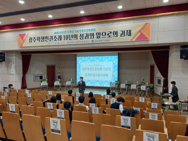 [¹Ìµð¾îÀü³² Á¦°¥´ëÁ¾ ±âÀÚ] ±¤Áֽñ³À°Ã»ÀÌ Áö³ 9ÀÏ ±¤ÁÖ±³À°¿¬¼ö¿ø¿¡¼ ¼¼°èÀαǼ±¾ð 73Áֳ⠱â³ä ¹ÎÁÖÀαÇÅä·Ðȸ¸¦ °³ÃÖÇß´Ù. 13ÀÏ ½Ã±³À°Ã»¿¡ µû¸£¸é Åä·Ðȸ´Â ¡®±¤ÁÖÇлýÀαÇÁ¶·Ê 10³âÀÇ ¼º°ú¿Í ¾ÕÀ¸·ÎÀÇ °úÁ¦¡¯¸¦ ÁÖÁ¦·Î ½Ç½ÃµÆ¡¦