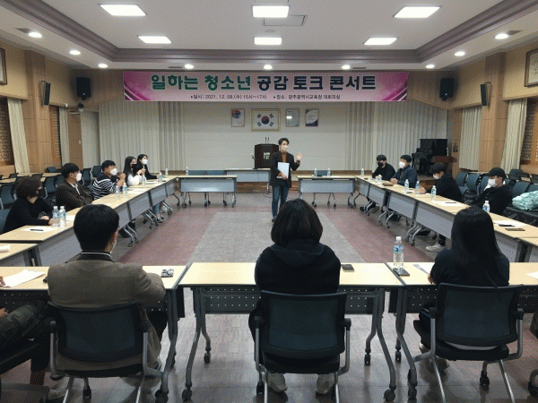 [¹Ìµð¾îÀü³² Á¦°¥´ëÁ¾ ±âÀÚ] ±¤Áֽñ³À°Ã»ÀÌ Áö³ 8ÀÏ ´ëȸÀǽǿ¡¼ ³ëµ¿ °æÇèÀÌ ÀÖ´Â Çлý°ú Çб³ ¹Û û¼Ò³âÀÇ À̾߱⸦ µè°í °Ý·ÁÇϱâ À§ÇØ ¡®ÀÏÇϴ û¼Ò³â °ø°¨ ÅäÅ© ÄܼƮ¡¯¸¦ °³ÃÖÇß´Ù. 9ÀÏ ½Ã±³À°Ã»¿¡ µû¸£¸é ÅäÅ© ÄܼƮ´Â ÀÏ¡¦