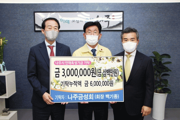 [¹Ìµð¾îÀü³² ¹Úº¹»ê ±âÀÚ] ³ªÁÖ Ãâ½Å Àç°æÇâ¿ì¸ðÀÓÀÎ ¡®³ªÁÖ ±Ý¼ºÈ¸¡¯°¡ À۳⿡ ÀÌ¾î °íÇâ ÈĹ迡 ´ëÇÑ ¾ÖÁ¤À» ÀüÇß´Ù. ³ªÁֽô 8ÀÏ ¡®³ªÁÖ ±Ý¼ºÈ¸¡¯¿¡¼ ÀÎÀçÀ°¼º±â±Ý 300¸¸¿øÀ» ³ªÁÖ±³À°ÁøÈïÀç´Ü¿¡ ±âŹÇß´Ù°í ¹àÇû´Ù. À̳¯ ½ÃÀå ¡¦
