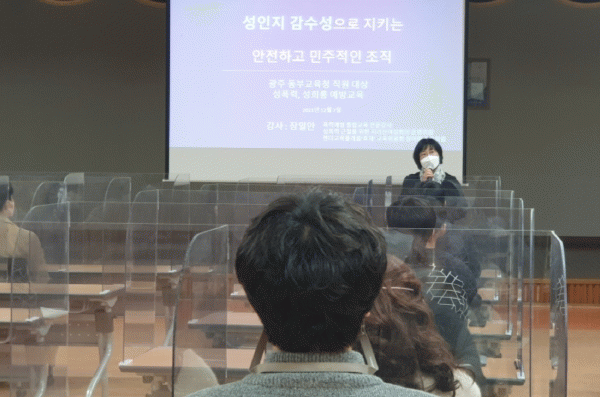 [¹Ìµð¾îÀü³² Á¦°¥´ëÁ¾ ±âÀÚ] ±¤ÁÖµ¿ºÎ±³À°Áö¿øÃ»ÀÌ 7ÀÏ ¸ðµç Á÷¿øÀ» ´ë»óÀ¸·Î ¡®¼ºÀÎÁö °¨¼ö¼ºÀ¸·Î ÁöŰ´Â ¾ÈÀüÇÏ°í ¹ÎÁÖÀûÀÎ Á¶Á÷¡¯À» ÁÖÁ¦·Î ÇÑ Á÷Àå±³À°À» ½Ç½Ã°£ ´ë¸é¡¤ºñ´ë¸é ¹æ½ÄÀ» º´ÇàÇØ ½Ç½ÃÇß´Ù. À̳¯ Áö¿øÃ» ´ëȸÀǽǰú 6°³ ¡¦