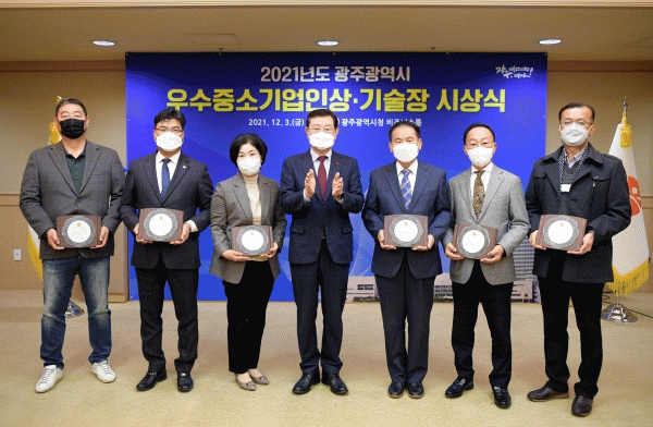[¹Ìµð¾îÀü³² Á¦°¥´ëÁ¾ ±âÀÚ] ±¤ÁÖ±¤¿ª½Ã´Â 2021³â ¿ì¼öÁß¼Ò±â¾÷ÀÎ 4¸í°ú ±â¼úÀå 2¸íÀ» ¼±Á¤Çϰí 3ÀÏ ½Ãû ºñÁî´Ï½º·ë¿¡¼ »óÆÐ¸¦ ¼ö¿©Çß´Ù. ±¤Áֽô 2012³âºÎÅÍ Áö¿ªÁß¼Ò±â¾÷ Áß ±â¼ú·ÂÀÌ ¿ì¼öÇÏ°í °í¿ëâÃâ µî Áö¿ª °æÁ¦¹ßÀü¿¡ ±â¿©ÇÑ¡¦