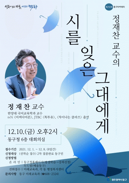 [¹Ìµð¾îÀü³² ±èÁ¤¿ì ±âÀÚ] ±¤ÁÖ µ¿±¸´Â ¿À´Â 10ÀÏ ¿ÀÈÄ 2½Ã ±¸Ã» 6Ãþ ´ëȸÀǽǿ¡¼ ÇѾç´ë Á¤ÀçÂù ±³¼ö¸¦ ÃÊÃ»ÇØ ¡®½Ã¸¦ ÀØÀº ±×´ë¿¡°Ô¡¯¶ó´Â ÁÖÁ¦·Î ¿ÃÇØ ¸¶Áö¸· µ¿±¸ ¾ÆÄ«µ¥¹Ì¸¦ °³ÃÖÇÑ´Ù°í ¹àÇû´Ù. À̹ø ¾ÆÄ«µ¥¹Ì´Â ¾î·Æ°Ô¸¸ ´À²¸Áö´Â¡¦