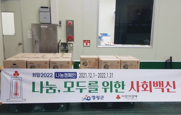 [¹Ìµð¾îÀü³² Á¦°¥´ëÁ¾ ±âÀÚ] ¿µ±¤±º ±º¼³ó°ø´ÜÁö¿¡ ¼ÒÀçÇÑ ¿¬¼ö½ÄǰÀº Áö³ 1ÀÏ ¡®Èñ¸Á2022 ³ª´®Ä·ÆäÀΡ¯¿¡ Âü¿©ÇØ ±èÀåöÀ» ¸Â¾Æ ¾î·Á¿î ÀÌ¿ôÀ» À§ÇØ ½á´Þ¶ó¸ç Á£°¥ 400ÅëÀ» ¿µ±¤±º¿¡ ±âŹ Çß´Ù. ¿¬¼ö½ÄǰÀº ¿µ±¤Æ¯»êǰÀÎ Á£°¥·ù¸¦ ÁÖ¡¦