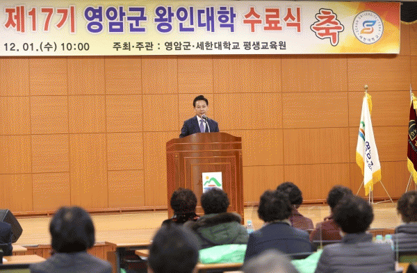 [¹Ìµð¾îÀü³² ±è±âö ±âÀÚ] ¿µ¾Ï±º Á¾ÇÕ»çȸº¹Áö°ü¿¡¼´Â 12¿ù 1ÀÏ ¼ö·á»ý°ú °ü°èÀÚ°¡ Âü¼®ÇÑ °¡¿îµ¥ Á¦17±â ¿µ¾Ï±º ¿ÕÀδëÇÐ ¼ö·á½ÄÀ» °³ÃÖÇß´Ù. Á¦17±â ¿ÕÀδëÇÐÀº 94¸íÀÇ ¼ö·á»ýÀ» ¹èÃâ, ¿µ¾ÏÀ¾ ±è¼ø¾È ¾î¸£½ÅÀ» ºñ·ÔÇÑ 39¸íÀÌ °³±Ù»ó¡¦