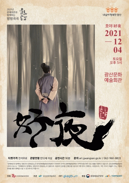 [¹Ìµð¾îÀü³² ±èÁ¤¿ì ±âÀÚ] ±¤ÁÖ ±¤»ê±¸°¡ ÁÖ°üÇÏ´Â ¹®¿¹È¸°ü Ưº°±âȹ °ø¿¬ ¿¬±Ø ¡®È£¾ß:û¿å¨¡¯°¡ 12¿ù4ÀÏ ¿ÀÈÄ 5½Ã ±¤»ê¹®È¿¹¼úȸ°ü ¹«´ë¿¡ ¿À¸¥´Ù. ¿¬±Ø ¡®È£¾ß:û¿å¨¡¯´Â Á¶¼±½Ã´ë ±Ã±ÈÀ» ¹è°æÀ¸·Î ¾ôÈ÷°í¼³Å² °¡½¿ ¾ÆÇ »ç¶ûÀ̾߱â·Î¡¦