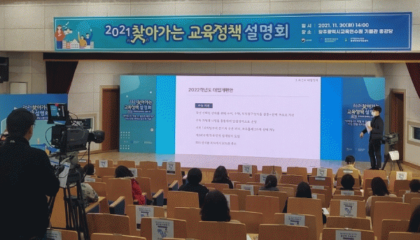 [¹Ìµð¾îÀü³² Á¦°¥´ëÁ¾ ±âÀÚ] ±¤Áֽñ³À°Ã»ÀÌ 30ÀÏ ±¤ÁÖ±³À°¿¬¼ö¿ø Áß°´ç¿¡¼ Çкθð µîÀ» ´ë»óÀ¸·Î ¡®2021 ã¾Æ°¡´Â ±³À°Á¤Ã¥ ¼³¸íȸ¡¯¸¦ ½Ç½ÃÇß´Ù. À̹ø Á¤Ã¥¼³¸íȸ´Â º¯ÈÇÏ´Â ´ëÇÐÀԽà Á¤Ã¥ °ü·Ã ³»¿ëÀ» »ìÆìº¸±â À§ÇØ ¸¶·ÃµÆ°í ±³À°¡¦