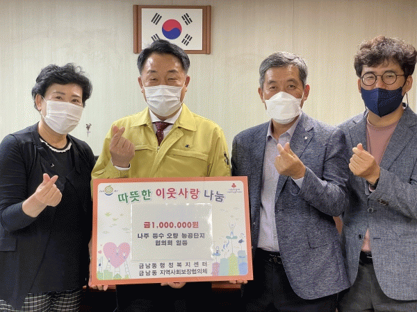 [¹Ìµð¾îÀü³² ¹Úº¹»ê ±âÀÚ] ³ªÁֽà ±Ý³²µ¿Àº µ¿¼ö¡¤¿À·®³ó°ø´ÜÁöÇùÀÇȸ¿¡¼ »ýȰÃë¾à°èÃþÀ» À§ÇÑ °Ü¿ï¸ÂÀÌ ÈÄ¿ø±Ý 100¸¸¿øÀ» ±âŹÇß´Ù°í 25ÀÏ ¹àÇû´Ù. Áö³ ÇØ¿¡ ÀÌ¾î ±âŹµÈ ÈÄ¿ø±ÝÀº »ý°è À¯Áö¿¡ ¾î·Á¿òÀ» °Þ´Â Ȧ¸ö ³ëÀÎ, Àå¾ÖÀÎ °¡±¸¡¦