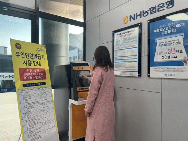 [¹Ìµð¾îÀü³² ±è±âö ±âÀÚ] À强±ºÀÌ ÁֹΠÆíÀǸ¦ À§ÇØ NH³óÇùÀºÇà À强±ºÁöºÎ 365Äڳʿ¡ ¹«Àιοø¹ß±Þ±â 1´ë¸¦ Ãß°¡ ¼³Ä¡Çß´Ù. ¹«Àιοø¹ß±Þ±â¸¦ ÀÌ¿ëÇÏ¸é ½ÅºÐÁõÀÌ ¾ø¾îµµ Áö¹®ÀνÄÀ¸·Î Áֹεî·Ï µî¡¤Ãʺ», ÅäÁö´ëÀå, ±¹¼¼Áõ¸í, Áö¹æ¼¼¡¦