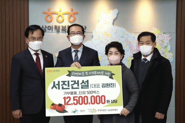 [¹Ìµð¾îÀü³² ±èÁ¤¿ì ±âÀÚ] ¢ß¼Áø°Ç¼³ÀÌ Áö³ 23ÀÏ ±¤»ê±¸Ã»¿¡¼ Àü´Þ½ÄÀ» °®°í ±¤»ê±¸ °í·ÁÀθ¶À»°ú »çȸº¹Áö½Ã¼³À» À§ÇØ ´Ü°¨ 500»óÀÚ¸¦ Åõ°Ô´õ±¤»ê ³ª´®¹®ÈÀç´Ü¿¡ ±âºÎÇß´Ù.