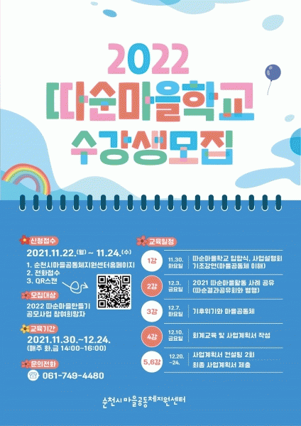 [¹Ìµð¾îÀü³² ÀÓ¼º¿Ï ±âÀÚ] ¼øÃµ½Ã°¡ ¸¶À»°øµ¿Ã¼ Ȱµ¿ Áö¿ø »ç¾÷ÀÎ ¡®µû¼ø¸¶À» ¸¸µé±â¡¯»ç¾÷ÀÇ ÀÌÇØ¸¦ µ½°íÀÚ µû¼ø¸¶À» Çб³¸¦ ¿î¿µÇÑ´Ù. À̹ø ±³À°Àº 11¿ù 30ÀϺÎÅÍ 12¿ù 24ÀϱîÁö ÃÑ 6°À¸·Î ÁøÇàµÇ¸ç ¸¶À»°øµ¿Ã¼ÀÇ ±âº» ÀÌÇØ¿Í ÇÔ²² ±×¡¦