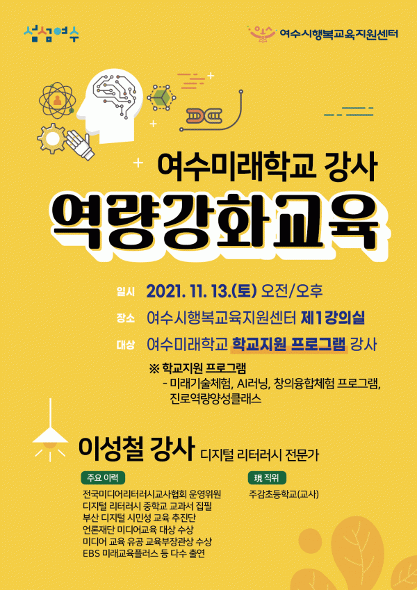 [¹Ìµð¾îÀü³² ÀüÇü¼º ±âÀÚ] ¿©¼ö½Ã´Â ¿ì¸®Áö¿ª û¼Ò³âµé¿¡°Ô µðÁöÅÐ ½Ã´ë¿¡ ÇʼöÀûÀ¸·Î ¿ä±¸µÇ´Â Á¤º¸ ÀÌÇØ ¹× Ç¥Çö ´É·ÂÀ» Ű¿ï ¼ö ÀÖ´Â ±âȸ¸¦ Á¦°øÇϱâ À§ÇØ ¹Ì·¡±â¼ú ±³À° °»ç¸¦ ´ë»óÀ¸·Î ¡®µðÁöÅÐ ¸®ÅÍ·¯½Ã ¿ª·®°È ±³À°¡¯¿¡ ³ª¼±´Ù¡¦