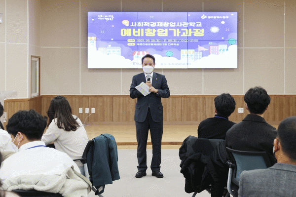 [¹Ìµð¾îÀü³² ±èÁ¤¿ì ±âÀÚ] ±¤ÁÖ µ¿±¸´Â Ǫ¸¥¸¶À»°øµ¿Ã¼¼¾ÅÍ¿¡¼ ¡®»çȸÀû°æÁ¦Ã¢¾÷»ç°üÇб³ ¿¹ºñâ¾÷°¡°úÁ¤¡¯ ¼ö·á½ÄÀ» ¼ºÈ²¸®¿¡ °³ÃÖÇß´Ù°í 11ÀÏ ¹àÇû´Ù. ¿¹ºñâ¾÷°¡°úÁ¤Àº »çȸÀû°æÁ¦ »ç¾÷°èȹ¼¸¦ Àü¹®°¡¿Í ÇÔ²² ÀÛ¼ºÇÏ°í ¹ßÇ¥ÇÏ´Â ±³¡¦