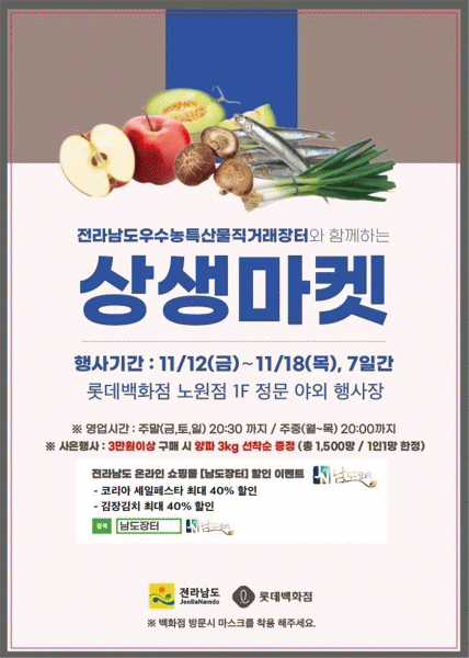 [¹Ìµð¾îÀü³² Á¦°¥´ëÁ¾ ±âÀÚ] Àü¶ó³²µµ¿Í ·Ôµ¥¹éÈÁ¡ÀÌ ¼ÕÀâ°í ´Ü°èÀû ÀÏ»óȸº¹¿¡ ¹ß¸ÂÃç 11ÀϺÎÅÍ 18ÀϱîÁö ¼öµµ±Ç ¼ÒºñÀÚ¿¡°Ô ¿ì¼öÇÑ Àü³² ³ó¼öƯ»ê¹°À» ¼±º¸ÀÌ¸ç ¼Òºñ½ÃÀå °ø·«¿¡ ³ª¼±´Ù. À̹ø ÆÇÃËÀüÀº ·Ôµ¥¹éÈÁ¡ ºÐ´çÁ¡°ú ³ë¿øÁ¡¿¡¡¦