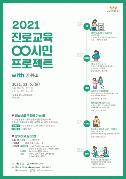 [¹Ìµð¾îÀü³² ±èÁ¤¿ì ±âÀÚ] ±¤ÁÖ ±¤»ê±¸°¡ ¿À´Â 6ÀÏ ¿ù°îµ¿ û¼Ò³â ¹®ÈÀÇ Áý ¡®¾ßÈ£¼¾ÅÍ¡¯¿¡¼ Áø·Î±³À° ¡®°ø°ø½Ã¹Î ÇÁ·ÎÁ§Æ®¡¯ °øÀ¯È¸¸¦ °³ÃÖÇÑ´Ù. ¡®°ø°ø½Ã¹Î ÇÁ·ÎÁ§Æ®¡¯´Â û¼Ò³âÀÇ ¹«ÇÑÇÑ °¡´É¼º°ú ÁÖüÀû ½Ã¹Î¼ºÀ» ÁöÇâÇÏ´Â ±¤»ê±¸¡¦