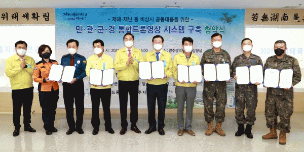 [¹Ìµð¾îÀü³² Á¦°¥´ëÁ¾ ±âÀÚ] ±¤ÁÖ±¤¿ª½Ã°¡ Àü±¹ ÃÖÃÊ·Î ¹Î¡¤°ü¡¤±º¡¤°æ µå·Ð¿µ»ó°øÀ¯ ¿î¿ë½Ã½ºÅÛÀ» ±¸ÃàÇÑ´Ù. ±¤Áֽô 27ÀÏ ¿ÀÈÄ ½Ãû Ãæ¹«½Ã¼³¿¡¼ À̿뼷 ½ÃÀå, ±¹°¡Á¤º¸¿øÁöºÎÀå, ÃÖ¼ø°Ç 31º¸º´»ç´ÜÀå, ±èÁØÃ¶ ±¤ÁÖ°æÂûûÀå, ·ùÁø»ê¡¦