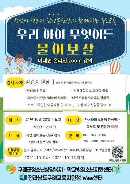 [¹Ìµð¾îÀü³² Á¦°¥´ëÁ¾ ±âÀÚ] ±¸·Ê±º û¼Ò³â»ó´ãº¹Áö¼¾ÅÍ¡¤Çб³¹Ûû¼Ò³âÁö¿ø¼¾ÅÍ´Â Áö³ 20ÀÏ ¡°¿ì¸® ¾ÆÀÌ ¹«¾ùÀÌµç ¹°¾îº¸»ì¡±À̶ó´Â ÁÖÁ¦·Î °ü³» Çкθ𸦠´ë»óÀ¸·Î ºñ´ë¸é ¿Â¶óÀÎ zoom °ÀÇ·Î ºÎ¸ð±³À°À» ½Ç½ÃÇß´Ù. À̹ø ºÎ¸ð±³À°¿¡´Â¡¦